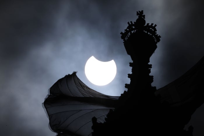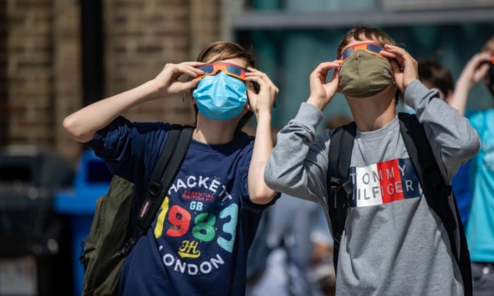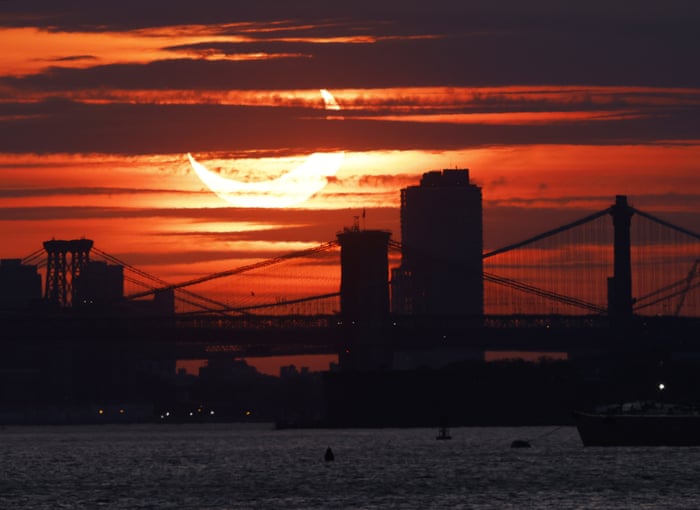 नई दिल्ली। इस साल का पहला वलयाकार सूर्य ग्रहण (Annular solar eclipse) खत्म हो गया है। सूर्य ग्रहण की यह घटना भारतीय समयानुसार दोपहर 01:42 बजे से शुरू हुई और शाम 06:41 पर खत्म। यह खगोलीय घटना नॉर्दन हेमिस्फीयर के कुछ हिस्सों में देखी गई। कनाडा, अमेरिका, ब्रिटेन के कुछ हिस्सों और सुदूर उत्तर के स्थानों में आंशिक ग्रहण दिखा। जबकि 'रिंग ऑफ फायर' केवल ग्रीनलैंड और एक्सट्रीम नॉर्थ लैटीट्यूड में देखा गया। भारत में सूर्य ग्रहण केवल लद्दाख और अरुणाचल प्रदेश में दिखाई दिया। यहां देखिए ग्रहण की कुछ शानदार तस्वीरें: